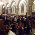tandis que les enfants aux cierges, servants d’autel, célébrant tenant l’Enfant-Dieu pour aller vers la crêche remontent l’allée centrale, en chantant avec toute l’assemblée « Il est né le divin enfant »