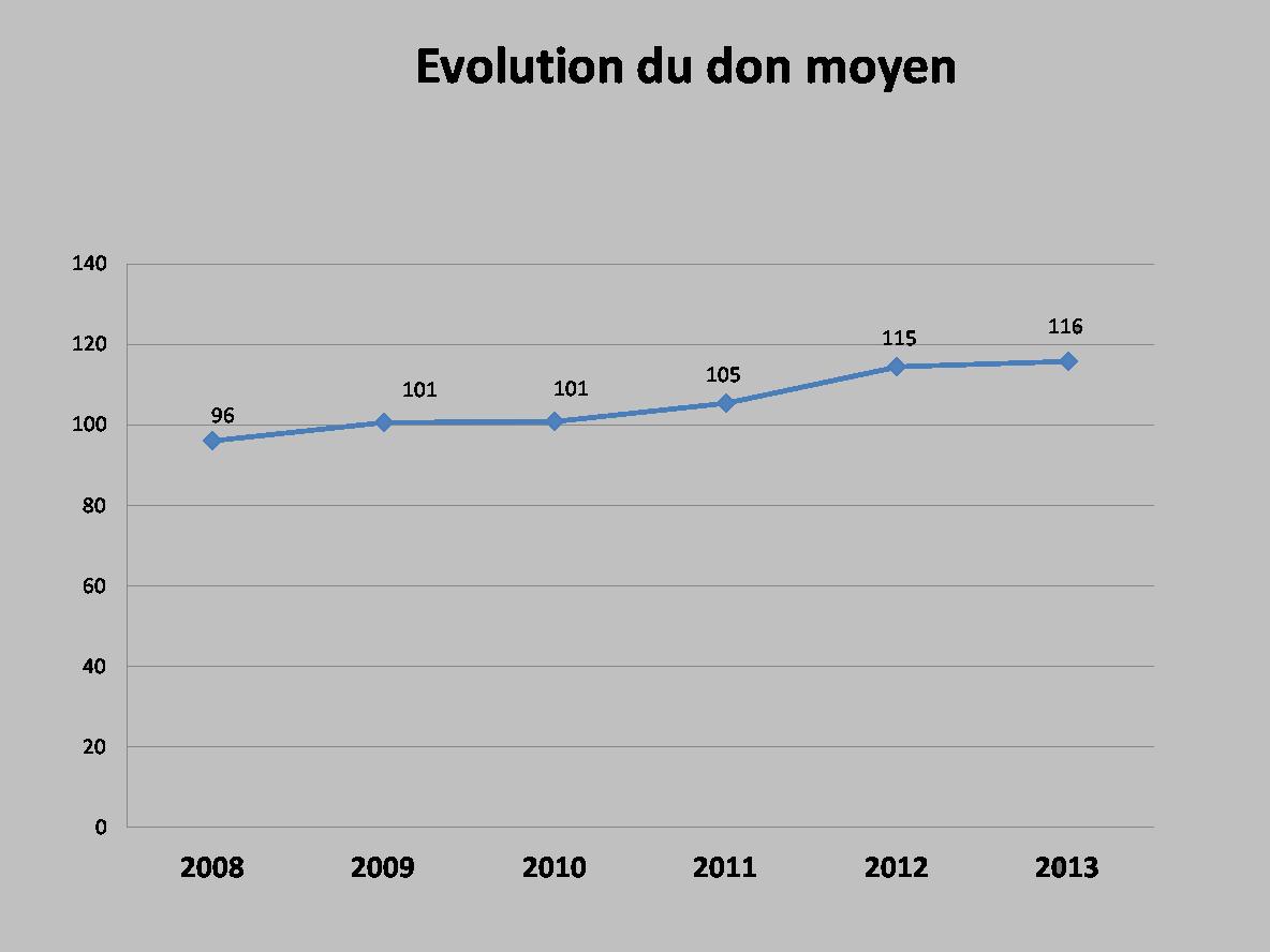 Malgré la baisse régulière du nombre de donateurs, la somme recueillie est stable entre 2008 et 2013, ce qui veut dire que chaque donateur donne un peu plus.