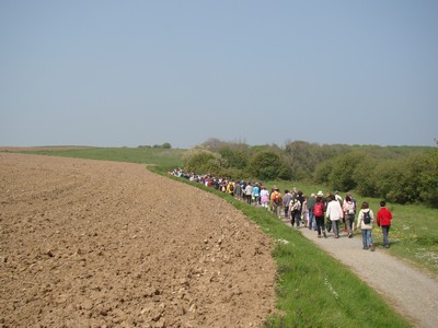 Un pique nique raisonnable avalé dans la bonne humeur. Un dessert partagé et voilà près de 300 personnes mises sur les rails de cette traversée originale. « Appelés par le Christ à semer l’espérance. Faire entendre sa voix aux hommes d’aujourd’hui » : c’est là le fil rouge, chanté, qui résonnera dans la baie tout au long du parcours.