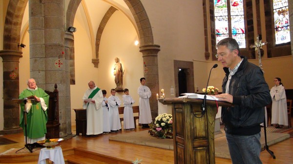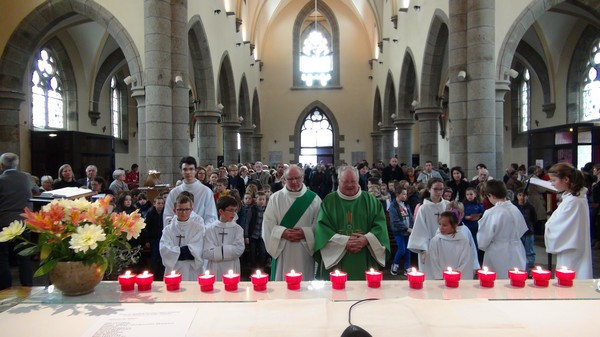 A l’église deTrégueux, l’assemblée est très nombreuse pour accueillir les jeunes qui rentrent en procession.