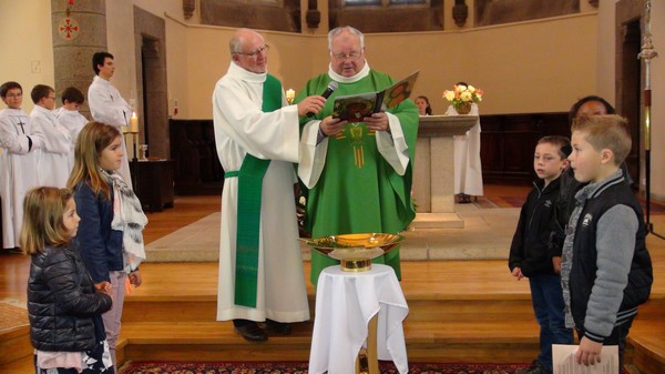 En ce dimanche 8 novembre, la première étape pour les futurs baptisés d’âge scolaire et les enfants se préparant à la 1re Eucharistie est célébrée à Trégueux et à Hillion.