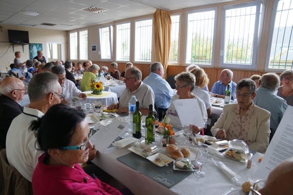 Après l’apéritif, les amis et la famille de Maurice se sont retrouvés à la salle paroissiale pour un repas préparé et partagé.