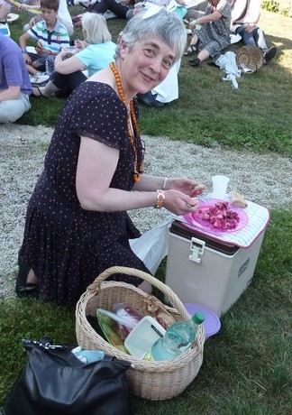 Pour le pique-nique, c’est la ruée vers les coins d’ombre…au nord du bâtiment du Grand Pré. Chacun s’installe au mieux !