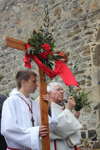 Devant l’église tout le monde s’est regroupé pour la bénédiction de rameaux .