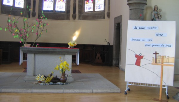 Chaque dimanche du carême nous avons été invité à écrire notre réflexion et ce que nous nous engagions à vivre sur une petite feuille d’arbre ou une fleur.
